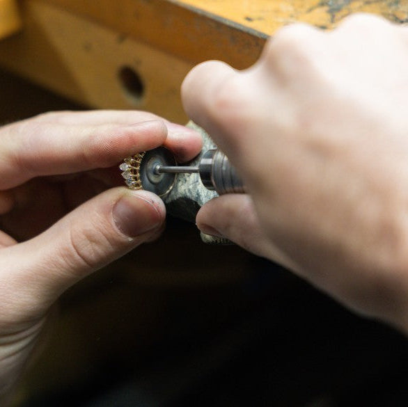 After final approval, your custom jewelry piece moves into production. Stones are set, surfaces are finished, and structural details are carefully completed with attention to long-term wearability.