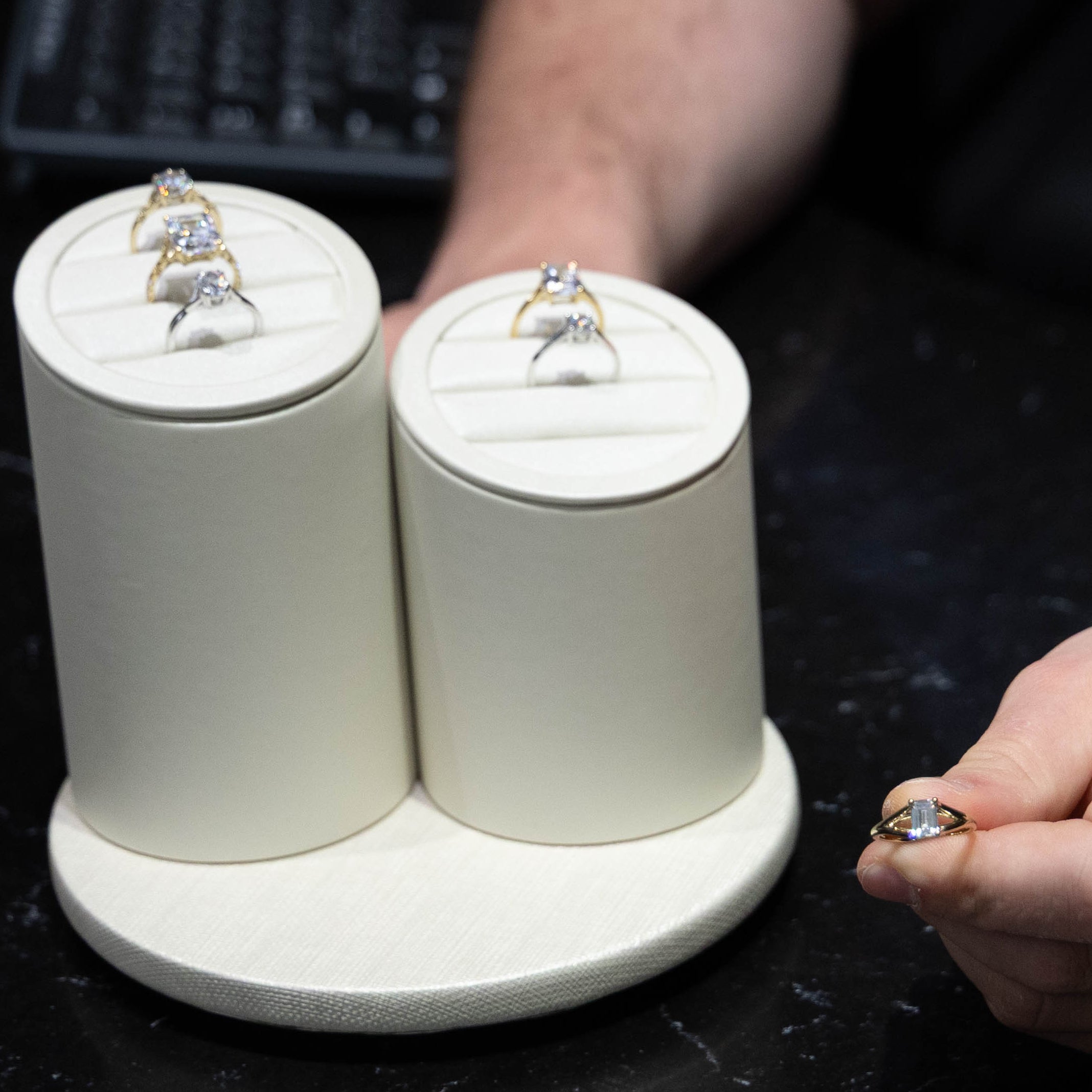 Many people begin by booking an engagement ring consultation, while others simply stop in to start looking at styles and talk through ideas. Walk-ins are always welcome. Some arrive with a clear direction, while others are just beginning to explore, and both are completely normal. We’ll guide you through options step-by-step so you can understand what feels right before making any decisions.