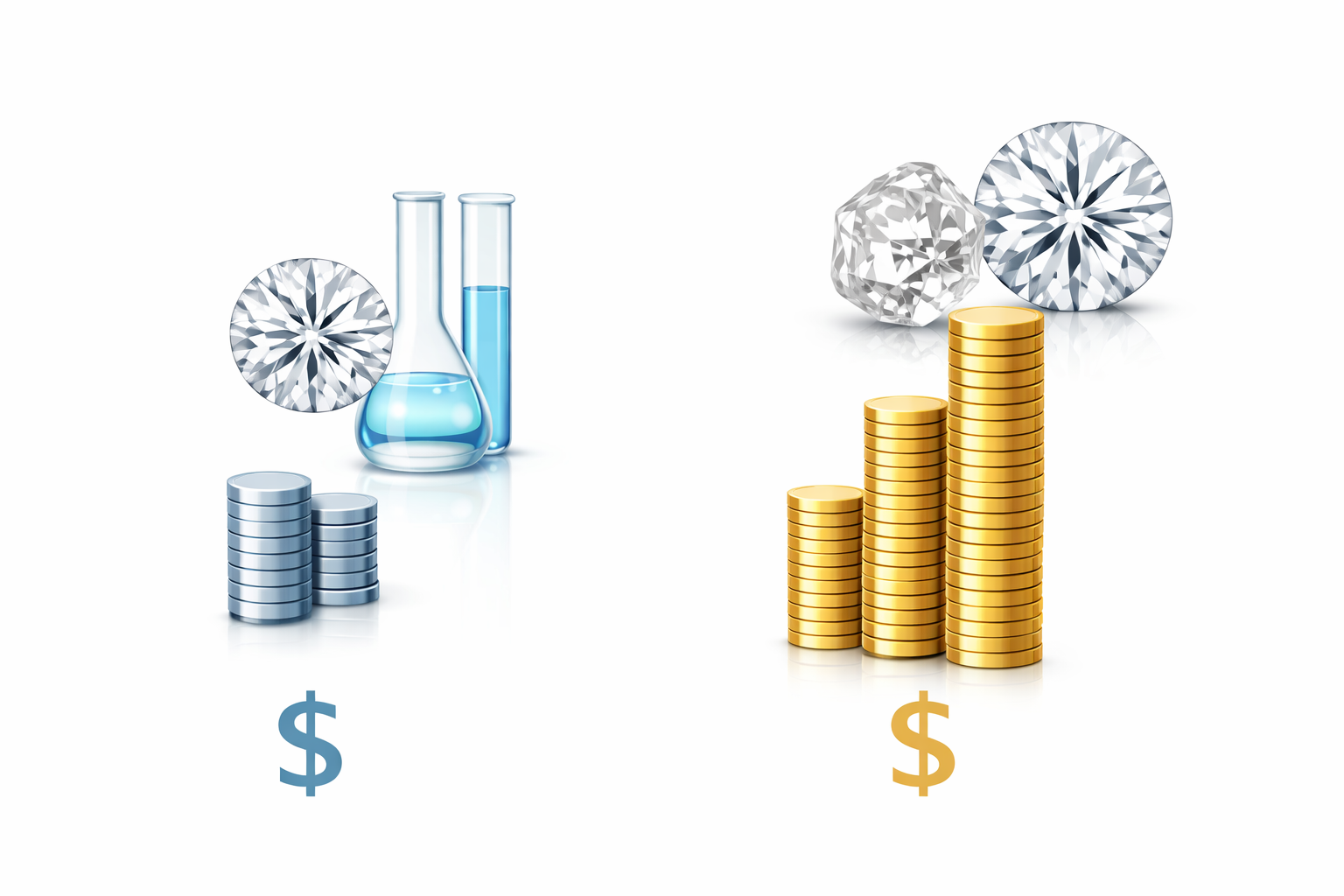 Lab grown diamonds typically cost significantly less for the same size and quality because production is faster and scalable.