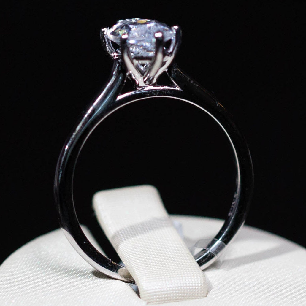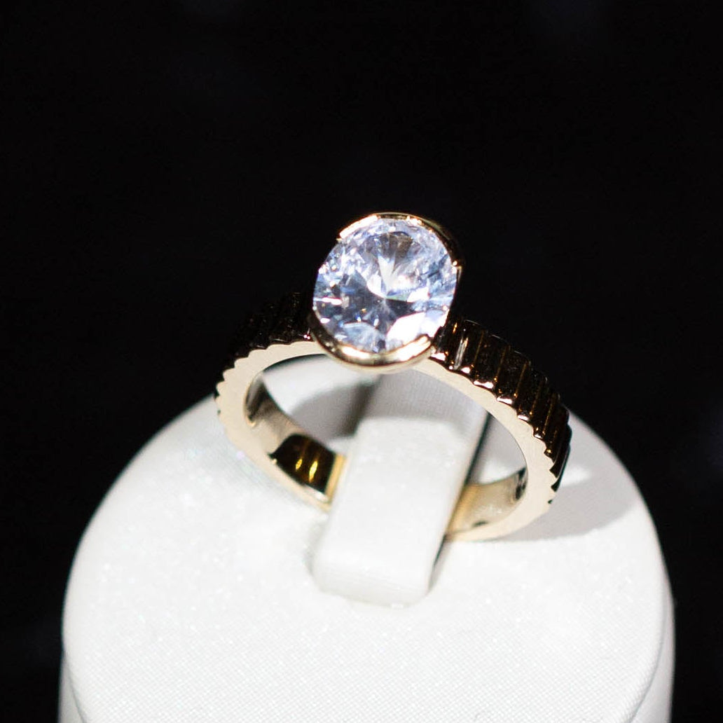 A single center stone on a clean band that keeps all the focus on your diamond. Simple, timeless, and always relevant
