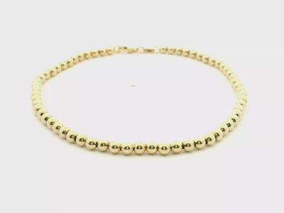Yellow gold bracelet featuring a continuous row of polished round beads in a classic strand layout. The design has a clean, minimal look with smooth reflective surfaces and a flexible, low profile that sits comfortably on the wrist. Easy to wear alone for a simple statement or layered with chains and bangles for added texture. This style can be recreated with different bead sizes, lengths, or gold colors.