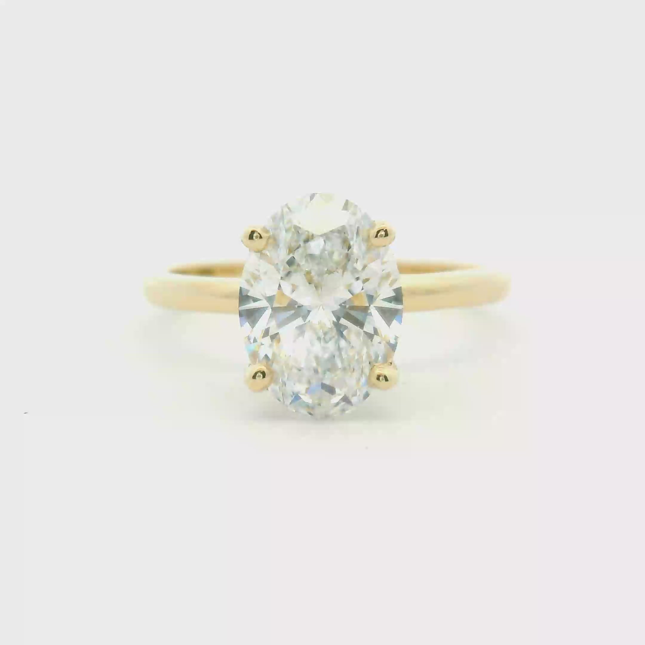A classic engagement ring featuring an oval center diamond set in a simple solitaire design. The clean band keeps the focus on the diamond, allowing its shape and sparkle to stand out beautifully. It’s a timeless style that pairs easily with a wide range of wedding bands and works perfectly for everyday wear. Since every engagement ring we create is designed around the person wearing it, this design can always be customized with different diamond shapes, sizes, or metal colors.